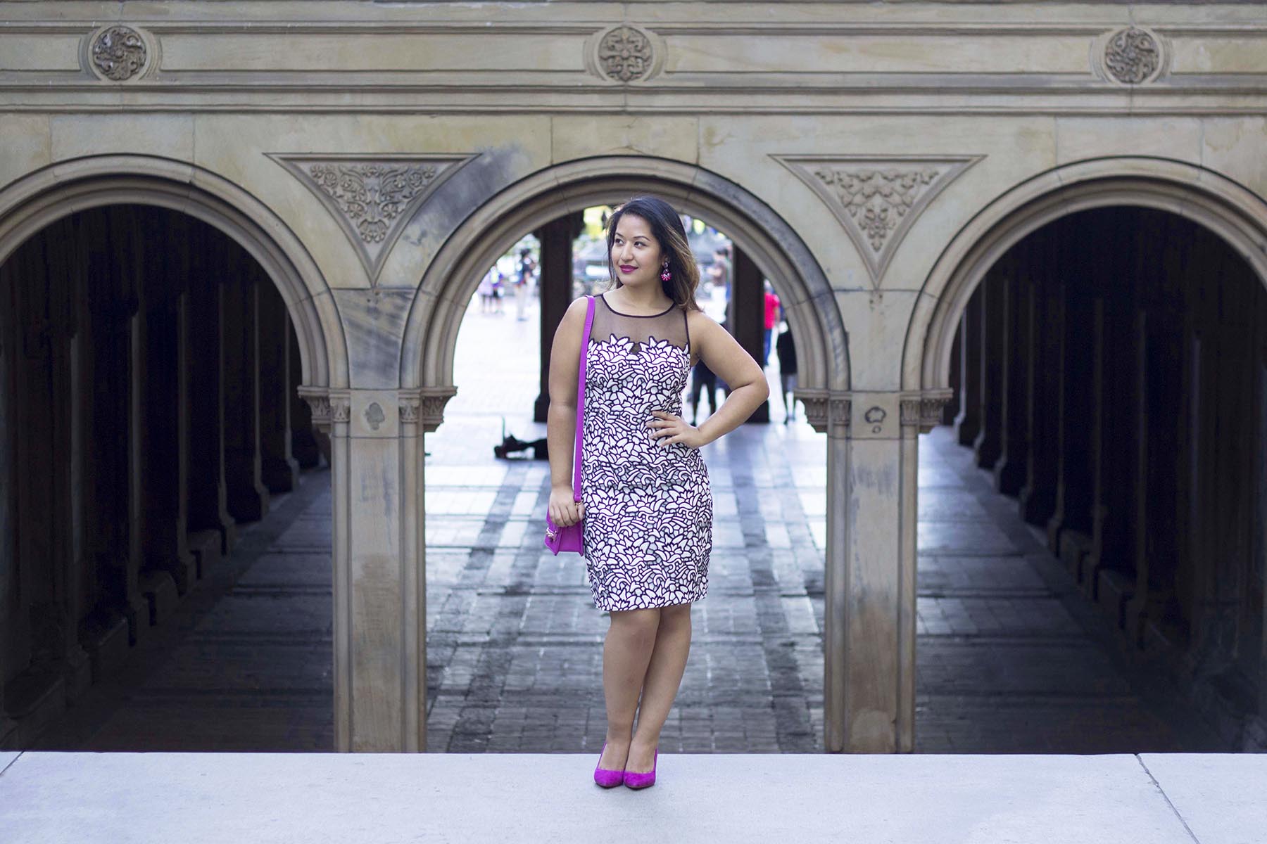 Because of the basic color combination, it makes it easy to add pops of color like this pink to make this look more special. A great pair of black or white shoes will also look great with this look!