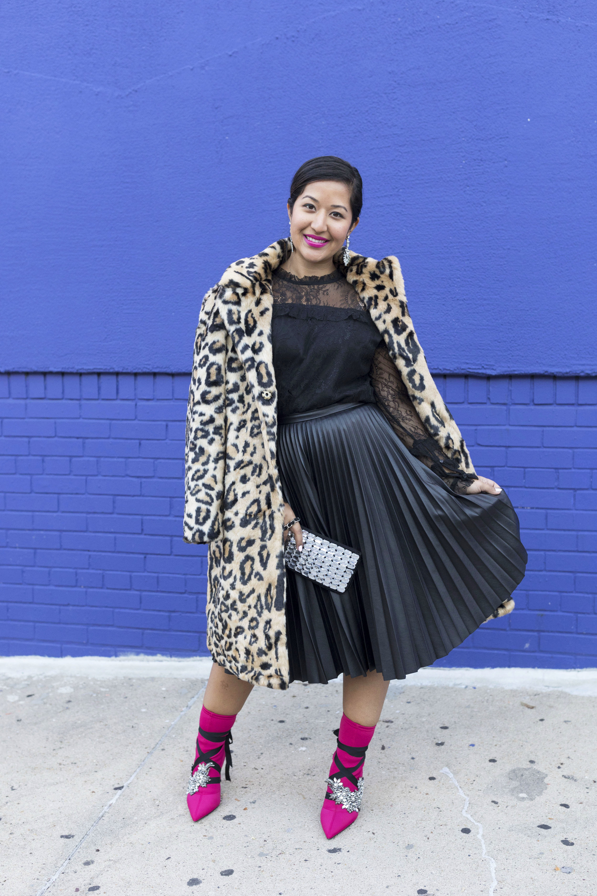 Another great reason to invest in a suit is that the pieces are interchangeable. You can mix your blazer with a pair of pants from another suit or wear it with jeans if you want a casual look. For this outfit, I mixed a new blazer with a pair of pants from a suit. The key with mixing pieces, is to be in the same color story. I pulled the pink from the blazer to my pants. The easy combination is always bringing it back to black. When mixing pieces, you can go bold by mixing colors, change up the patterns, and even combine silhouettes. I love wearing a masculine boxy boy blazer with a slim pant, or a fitted blazer with a wide leg pant. The key is always balance.